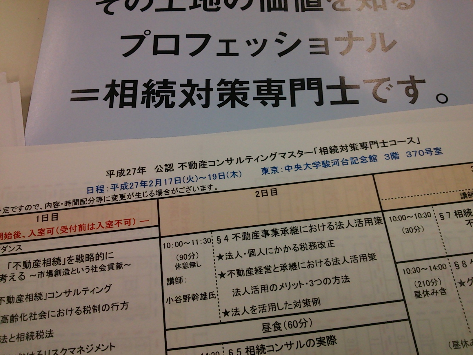 本日午後より不動産実務セミナーを受講しています。